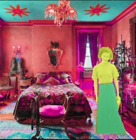 DSH Perfumes Soho Boheme art collage by Dawn Spencer Hurwitz of Germaine Cellier at the Chelsea Hotel