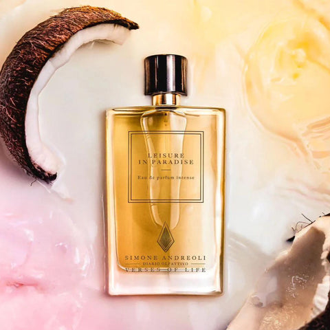 Leisure in Paradise by Simone Andreoli is a fragrance for both men and women that deserves a spot in every perfume enthusiast’s collection. It combines fruity notes, delicate creams, aromatic coconut, and light alcoholic undertones, creating a unique composition. This fragrance is like a cocktail, sweet and juicy, bringing lightness and joy. It is associated with bright yellow-orange hues and is perfect for a beach vacation. While its longevity is not the highest, this adds playfulness, allowing you to reapply without worrying about overwhelming yourself.