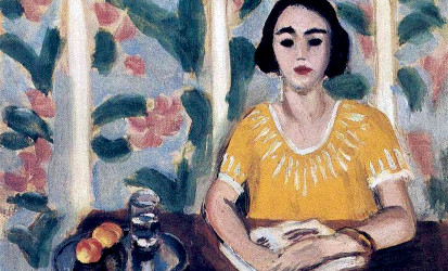 Note: top image is detail from Woman Reading with Peaches, Henri Mattisse, 1934, [brightness and contrast adjusted], public domain, via WikiArt.