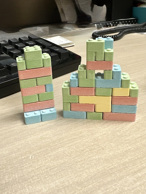 A colleague of mine brought me candy LEGO bricks that are actually buildable! I won’t lie – I munched on these candy bricks all day! They remind me of PEZ candy (are those still a thing?)!