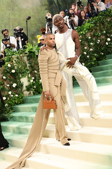 When I read that the theme and dress code this year was ‘Garden of Time,’ I thought about how the Costume Institute is bringing out these gorgeous garments that are so fragile they can break, and of course, I thought about flowers. I dressed Lil Nas X this year, and he was kind of like my flower. He had a peplum moment encrusted in 56,000 Swarovski crystals and 3,000 covered buttons on his suit, pants, and top. It was very tailored, very polished, and very chic. It took a minute to make. My look was a little bit more demure. It had a lot of covered buttons, too, with a long sash.