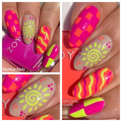 I decided I was going to do two more summer nail arts so this is the second to last neon look before I officially move on to autumn. After swatching the Zoya summer collection, I was still very much in the mood for brights so I pulled a few out and here we are.