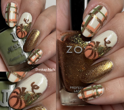 Hello all. My professor was nice and let us out early from class last night so I was able to get in one last Thanksgiving and autumn manicure. Remember when I mentioned I wanted to do pumpkin and plaid after doing my acorn and plaid look? Well here it is but this time it is very simple as I knew I would be taking these off soon and probably destroying them while cooking. So let’s get right to it.
