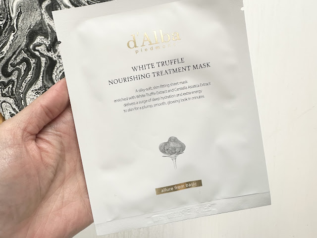 As I am writing this, it is the first Sunday in November and I have been up since 6:30am thanks to DST which for this one day makes me feel incredibly efficient! I was more familar with the brand d’Alba for its First Spray Serum, but while I was in a cute little Kbeauty store at Pacific Centre, I saw singles of the White Truffle Nourishing Treatment Mask and wanted to try it out! Having loved the scent of the First Spray Serum, I had every hope that the sheet mask would have the same scent!