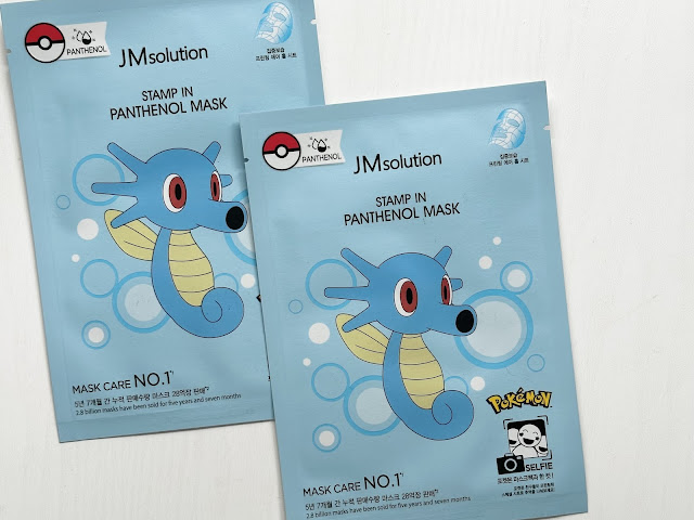Continuing on with JMsolution and their Pokemon series, today we feature Horsea and the Stamp In Panthenol Mask! As this is a mask promoting deep hydration, Horsea makes sense as the featured Pokemon as it is water-based!