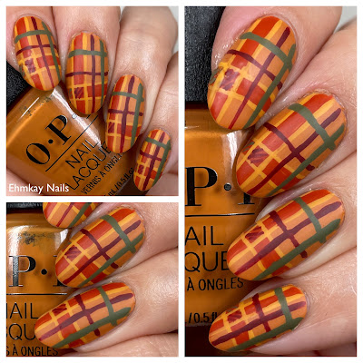 I wanted to use my new OPI again because I have just loved it and it is gorgeous. I have had a bunch of my favorite autumn cremes on my desk because I wanted to use them again and this is what I came up with!