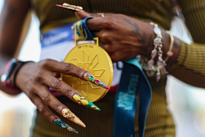 These track stars have trained for years for this moment, and their accomplishments are nothing short of astounding. This year, we were particularly excited to see Sha’Carri Richardson win the 100 meters with a lightning-fast 10.71 seconds, solidifying her place as part of the Olympic team—and she did so in her signature long, bedazzled nails.