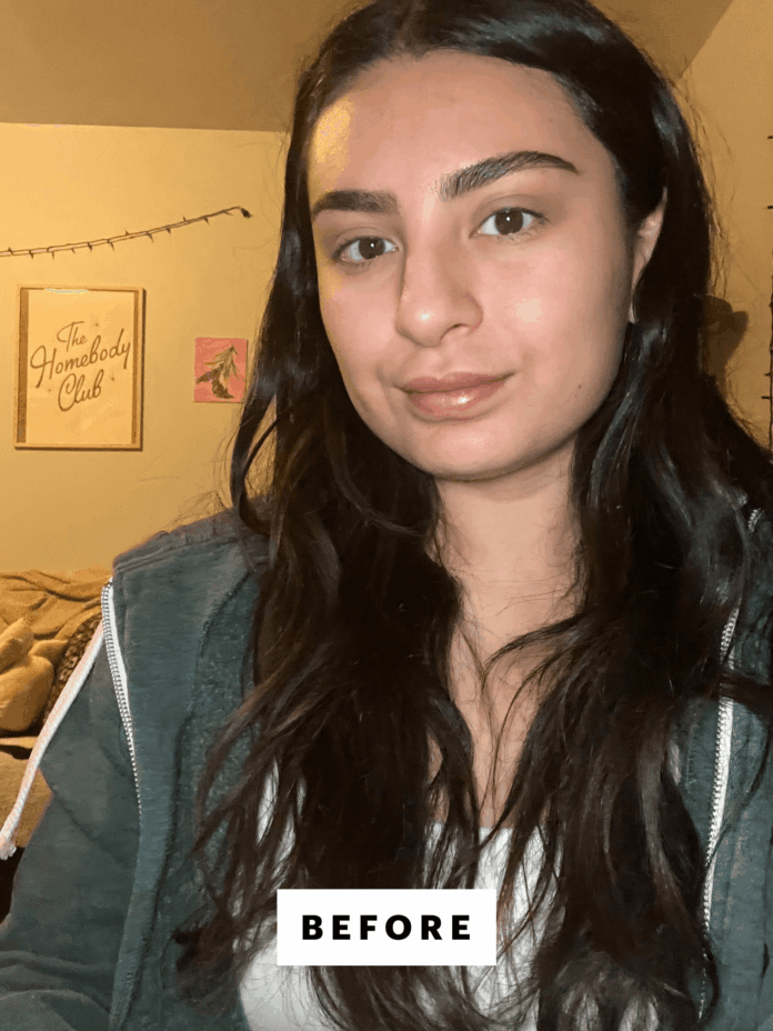 I start by tightlining my upper waterline and using a q-tip to clean up an excess on my lower line. Then I slowly begin lining my upper lid from the outer corner and working my way to mid-lash. Using the brush, I smooth out my inevitable bumps and continue to layer and blend until I have the color I’m happy with. Once I’ve finished with a strong coat, I apply my shadow and then go back in with the eyeliner once I’ve finished to beef up the color and definition. In under 10 minutes, I have defined eyes and carry on with my base products.”—Kassidy Silva, social media director