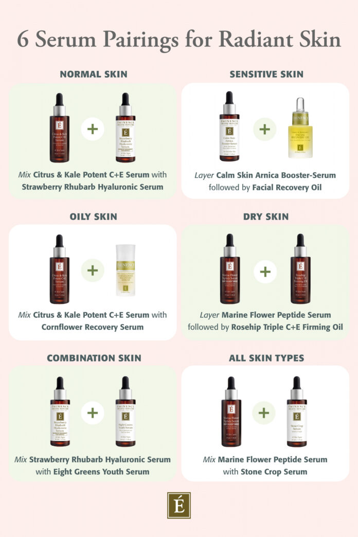Now that you’ve narrowed down your most suitable serum by concern and skin type, take a look at this infographic to see which serums you can either mix together and apply or which serums you can layer over each other.